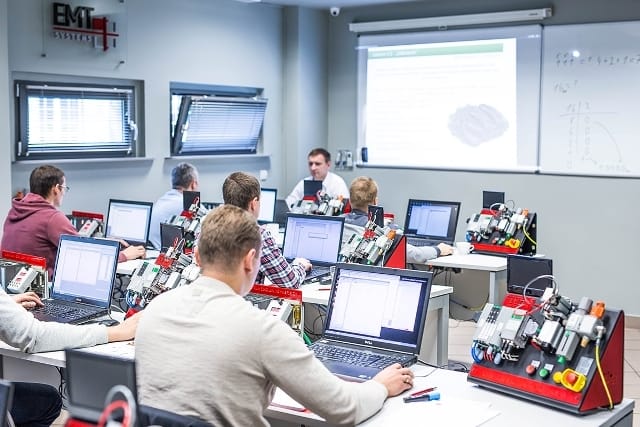 Do tego dochodzą połączenia z urządzeniami typu czujniki, roboty, obrabiarki CNC, sterowanie rozbudowanymi układami produkcyjnymi, spełniającymi określone cele biznesowe. Aby dotrzeć do poziomu efektywnej, samodzielnej pracy, mija dużo czasu. Jest to proces trudny, jednak dla pasjonatów bardzo ciekawy i angażujący. Na każdym kroku na zainteresowanych czeka nauka praktycznych aspektów produkcyjnego życia.