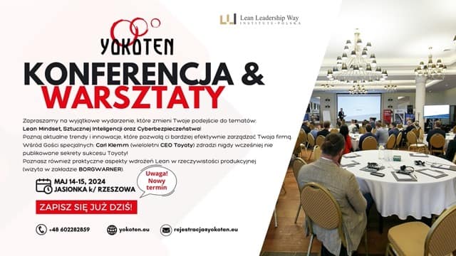 W dniach 14 – 15 maja 2024 w Jasionce koło Rzeszowa spotkamy się na Konferencji YOKOTEN aby przedstawić najnowsze trendy i innowacje w dziedzinie Lean Management.