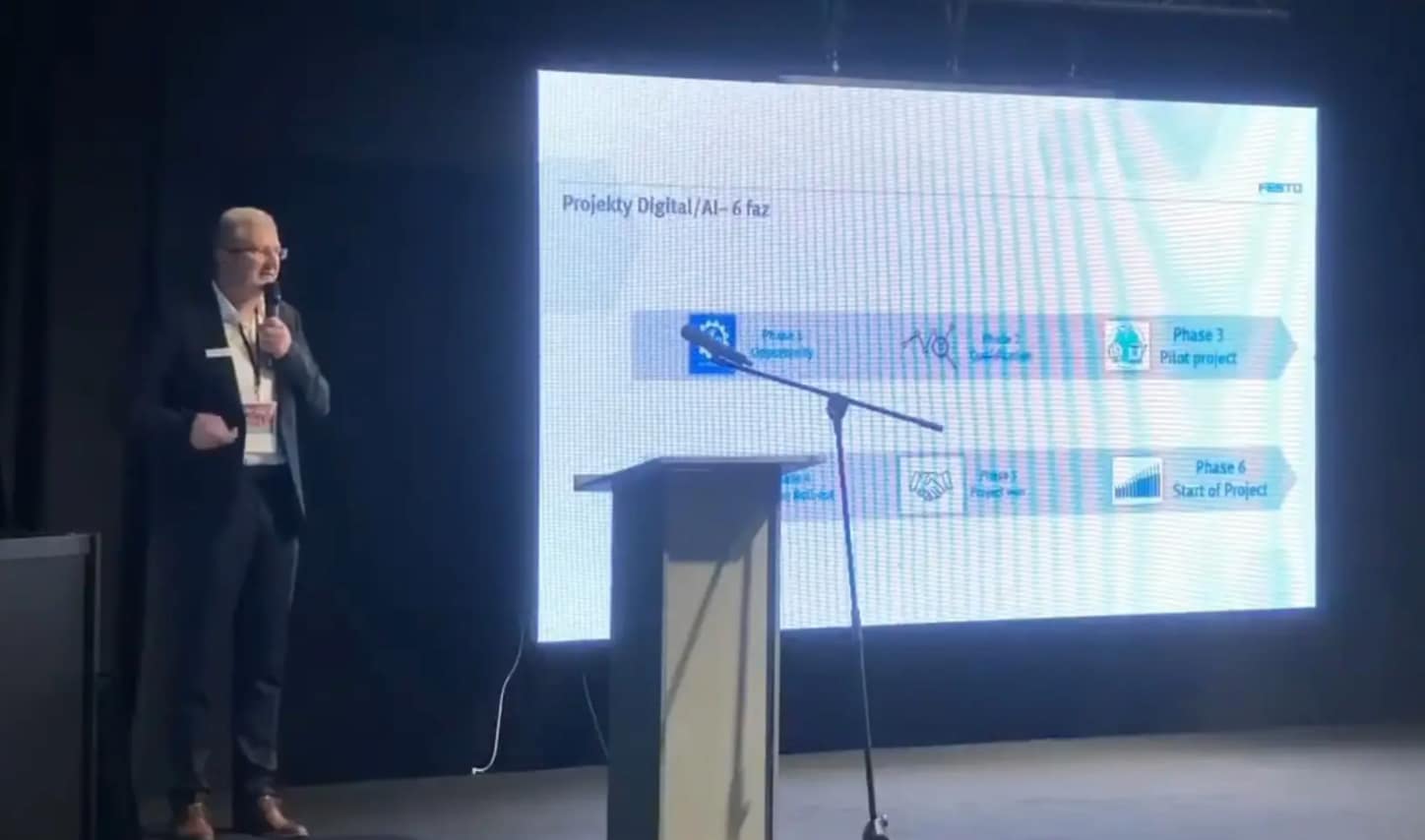 Platforma Przemysłu Przyszłości Za sprawą algorytmów da się przewidywać anomalie powodujące większe zużycie energii. Ostatni obszar, omówiony przez Jarosława Gołębiewskiego z Festo, to predictive maintenance, czyli predykcyjne utrzymanie ruchu. Ekspert wyliczył 6 faz wprowadzania projektów obejmujących sztuczną inteligencję: