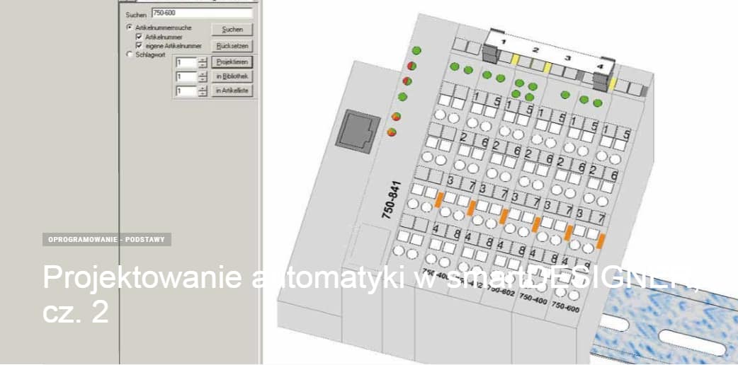 Od czego zacząć projekt automatyki na WAGO? Na początek należy przygotować odpowiednią koncepcję węzła sterowniczego. Wybieramy jednostkę główną oraz moduły z ponad pięciuset dostępnych w ofercie WAGO: I/O, analogowe, funkcyjne, komunikacyjne, zasilające etc. Zwykle automatyk odpowiedzialny jest nie tylko za programowanie, ale także za przygotowanie części elektrycznej lub przynajmniej koncepcji węzła. Dlatego warto skorzystać z konfiguratora smartDESIGNER, który pomaga przygotować listwę montażową z elementami automatyki w trybie online (za pomocą przeglądarki internetowej) i posiada opcję importu eksportu projektu do plików CAD/CAE, ale także eksportu pliku bezpośrednio do środowiska programistycznego czyli e!COCKPIT. Mało tego, istnieje możliwość wysłania bezpośredniego zapytania ofertowego do działu ofertowania WAGO w celu zakupienia gotowej zmontowanej listwy z elementami automatyki oraz oznacznikami.