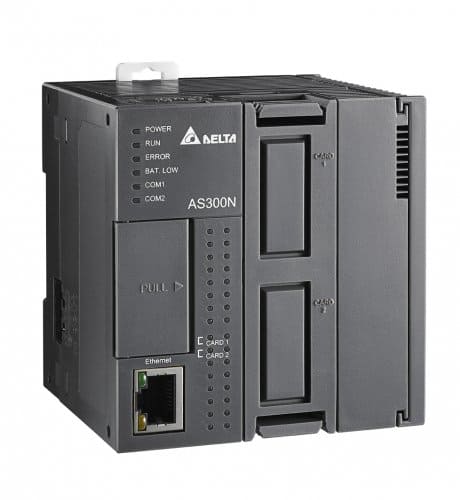 Pic: Za pośrednictwem wbudowanej sieci CANopen, kompaktowy, modułowy sterownik PLC Delta serii AS średniej klasy kontroluje pozycjonowanie do 8 osi za pomocą karty komunikacyjnej AS-FCOPM