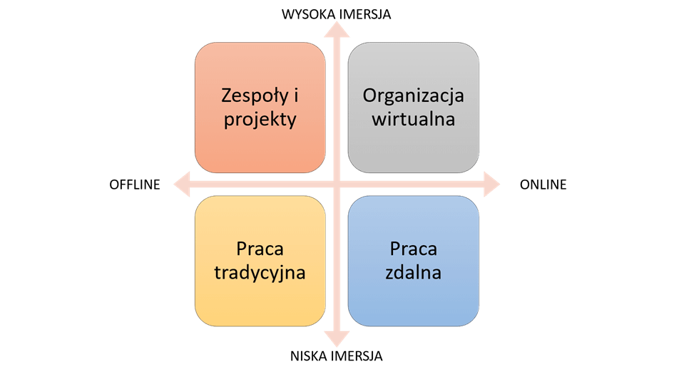Wirtualizacja miejsca pracy prowadzi do nieuniknionego ograniczania należącej do firmy przestrzeni, a gdzieniegdzie siedziba po prostu przenosi się do wspólnych przestrzeni biurowych z wynajętymi usługami recepcyjnymi i okazyjnie podnajmowanymi salami konferencyjnymi. W przypadku tradycyjnie pojmowanej organizacji mamy do czynienia z herezją. W rozumieniu wielu menadżerów nie da się skutecznie realizować funkcji zarządzania bez fizycznego kontaktu z pracownikami. Jednak w licznych firmach proces wirtualizacji pozwolił spojrzeć na ten problem z innej strony. Przedsiębiorstwa – dzięki pandemii – dostrzegły możliwości, jakie kryją się w takim procesie i coraz bardziej świadomie dążą do tego, by zmiana nabrała trwałego charakteru – m.in. szukając nowych sposobów interakcji z pracownikami i realizacji zarządzania przy większym rozproszeniu zespołów.
