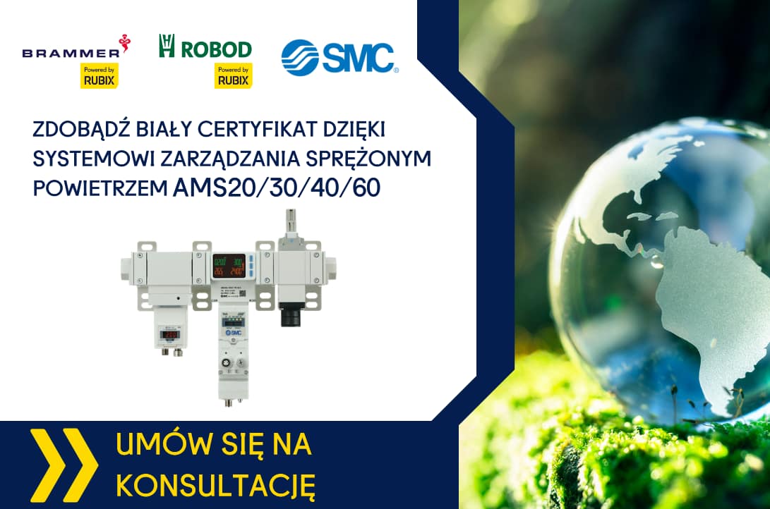 Wraz z naszym partnerem biznesowym firmą SMC chcielibyśmy przedstawić ich innowacyjny System Zarządzania Sprężonym Powietrzem serii AMS20/30/40/60, który jest skutecznym sposobem na poprawę efektywności energetycznej niemalże każdego przedsiębiorstwa poprzez bezpieczne zmniejszenie ciśnienia roboczego oraz ograniczenie zużycia sprężonego powietrza. Prezentowane rozwiązanie pomaga firmom zarządzać procesem produkcyjnym związanym ze sprężonym powietrzem. Jego wdrożenie umożliwia zoptymalizowanie procesów technologicznych oraz zmniejszenie ilości emisji CO2.