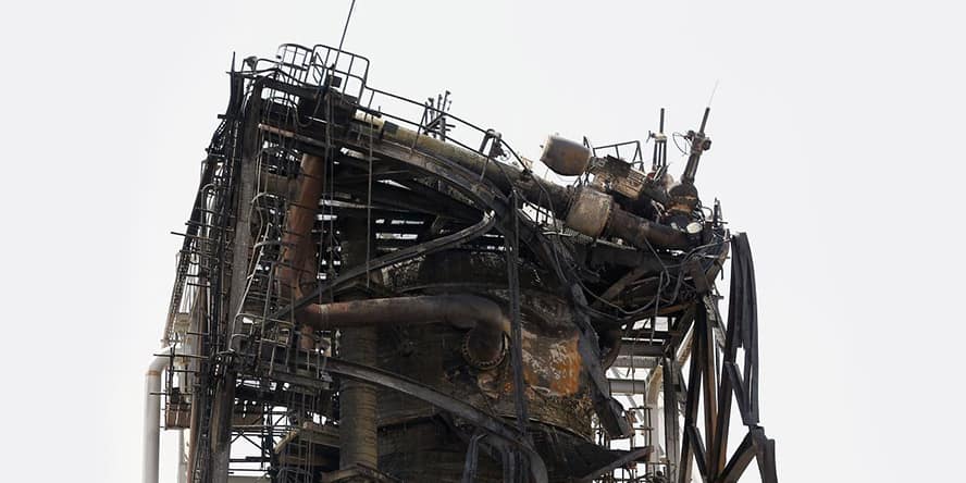Zdjęcie główne: Jedna z kolumn zniszczonych w wyniku ataku dronów.
