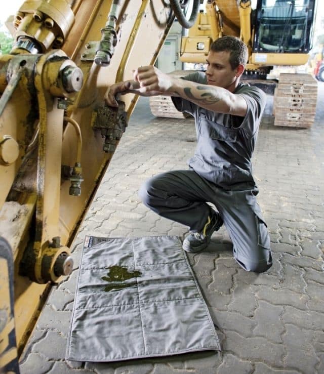 Mata olejowa podkładana pod naprawiane maszyny, urządzenia lub pojazdy, całkowicie zbiera skapujące ciecze, takie jak oleje silnikowe i przekładniowe, rozpuszczalniki, smary itp. Są one wchłaniane z powierzchni maty i bezpiecznie gromadzone w jej rdzeniu, wykonanym ze spe-cjalnej włókniny. Dzięki temu powierzchnia maty pozostaje zawsze sucha.