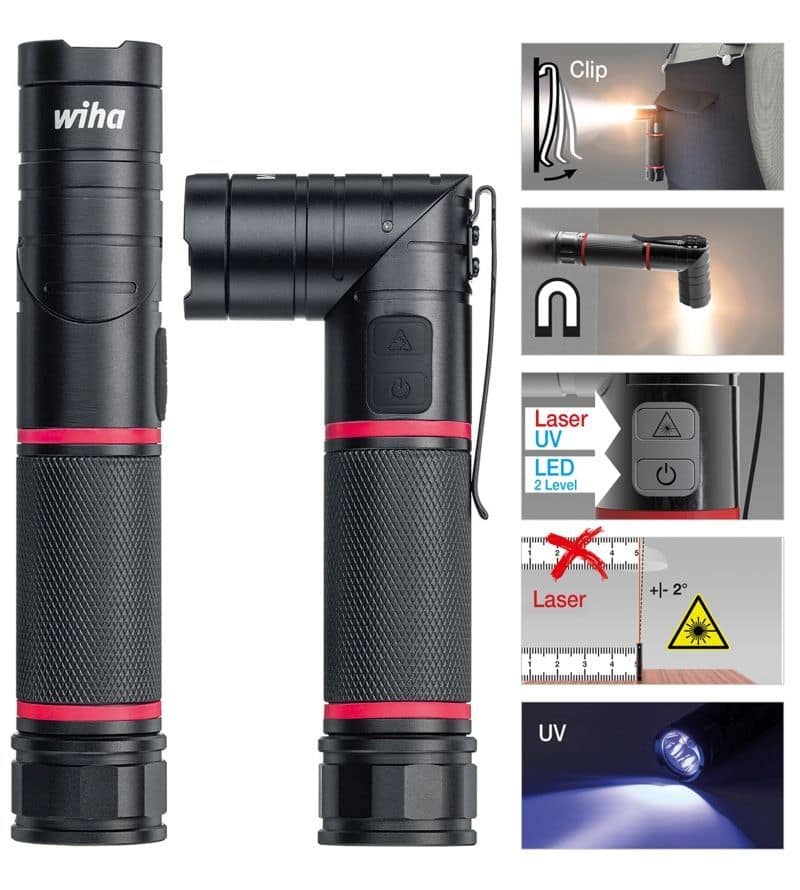 W odpowiedzi na potrzeby specjalistów, a zarazem przekuwając wnioski w czyn, Wiha dodaje do swojej oferty innowacyjną latarkę z unikatowym zestawem funkcji, która zwiększa efektywność i ułatwia pracę. To nowe narzędzie ręczne, wyposażone w inteligentne i praktyczne funkcje – bardzo silny strumień światła LED o dwóch stopniach natężenia, światło laserowe i ultrafioletowe, daje użytkownikowi różnorodne możliwości zastosowania, ułatwiając codzienną pracę w wielu sytuacjach – niezależnie czy mowa tu o profesjonaliście czy domowym majsterkowiczu. Łatwe określanie pozycji oraz przenoszenie wymiarów, możliwe dzięki odchylanej głowicy latarki lub stałej funkcji lasera, stanowią szczególne atrybuty tego poręcznego narzędzia w takim samym stopniu, jak jego klip czy magnetyczna funkcja mocowania.