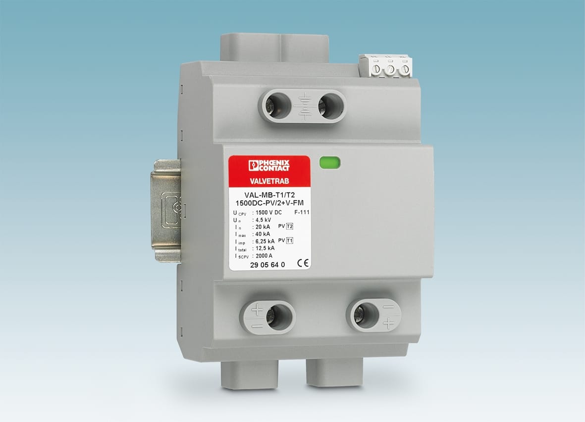 Nowa rodzina ograniczników VAL-MB firmy Phoenix Contact oferuje wydajne i niewielkie urządzenia do ochrony instalacji fotowoltaicznych dla napięć źródła do 1500V DC.