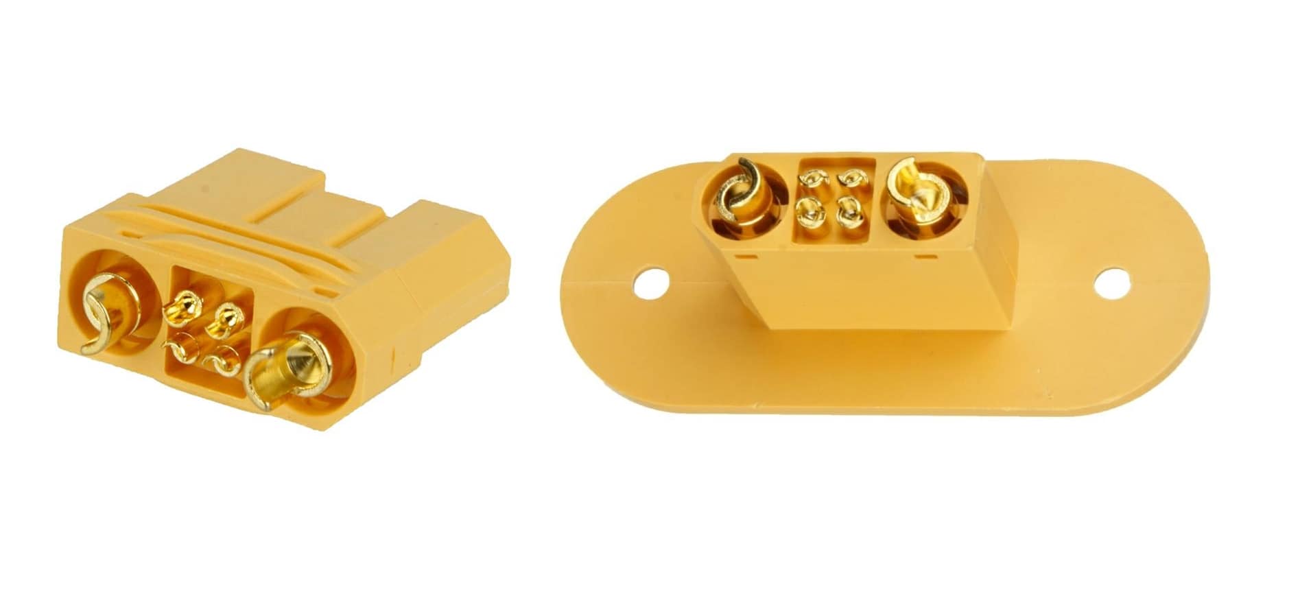 W ofercie znajdziemy liczne warianty montażowe złączy. Są to gniazda i wtyki przeznaczone do wlutowania w płytkę, montażu na kablu lub na panelu urządzenia (np. pokazane na fotografii 3 złącze XT60E-M i na fotografii 4 – XT30G-F).