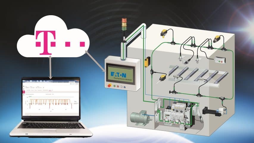W tym celu firmy Eaton i T-Systems wniosły do partnerstwa swoje kluczowe kompetencje. Inteligentna aparatura łączeniowa firmy Eaton jest w stanie zebrać wszystkie istotne dla procesu dane, jak również przekazać je do wyznaczonych komponentów automatyki. Na szczególną uwagę w tym względzie zasługuje cyfrowy wyłącznik silnikowy PKE lub nowy cyfrowy wyłącznik NZM. Oczywiście możliwe jest również włączenie do oferty przemienników częstotliwości firmy Eaton, począwszy od prostych DE1, a skończywszy na rozwiązaniach napędowych serii DG1. Zebrane dane mogą być następnie przetwarzane, na przykład za pomocą panelu dotykowego XV300 firmy Eaton i zintegrowanego oprogramowania wizualizacyjnego GALILEO. Ujednolicone protokoły pozwalają na łatwą integrację z platformą serwisową IoT dostarczaną przez firmę T-Systems. Ta ostatnia jest platformą serwisową multi-IoT, która oferuje użytkownikom rozwiązania systemowe i pakiety serwisowe najlepiej odpowiadające ich potrzebom.