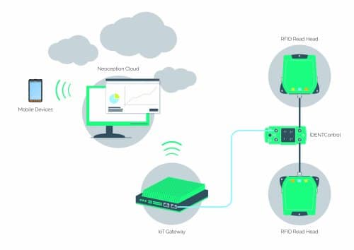 Zdjęcie: Dane z czytników RFID są przesyłane przez bramkę IoT do chmury Neoception, gdzie są one dostępne przez cały czas.